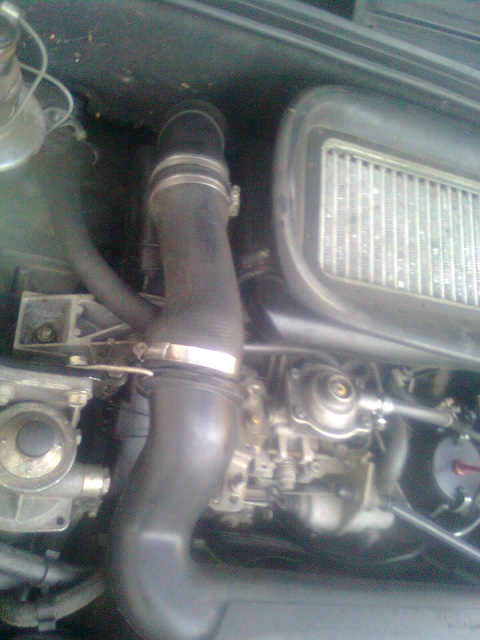 Pritaikiau šitokį nupjautą šlangos gabalą nuo kažkokio VW vietoj suplyšusios originalios gofruotos. Tai nėra gerai, nes sistema netenka sujungimo lankstumo, bet ai... bent tepaliuko nevarvins ant dangtelio ir Š nesiurbs į motorą.