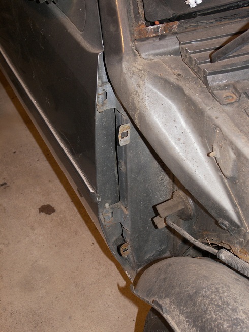 Bagažinės dugnas lyg nieko... "Galiniai sparnų kronšteinai" tai čia priekinių sparnų? Šitie sveiki. Po priekiniais sparnais/posparniais irgi ne pasaulio pabaiga. Na ir panašu kad ji tikrai nėra buvusi [stipriai] daužta, tik šiek tiek parūdijusi... Ir tikriausiai didelę meškos paslaugą padarė itin nekokybiškas ankstesnis slenksčių remontas.